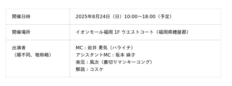 さらに、福岡会場でも「ちょっとパズドラ公式放送 ~ガンホーツアー2025~ In イオンモール福岡」をステージイベントにてライブ配信することが決定しました。現地にいらっしゃる方はステージの前で、遠方の方は公式チャンネルでご覧ください。