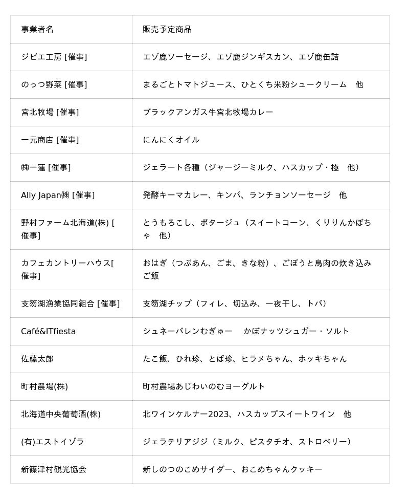 - 主な出展事業者・販売予定商品