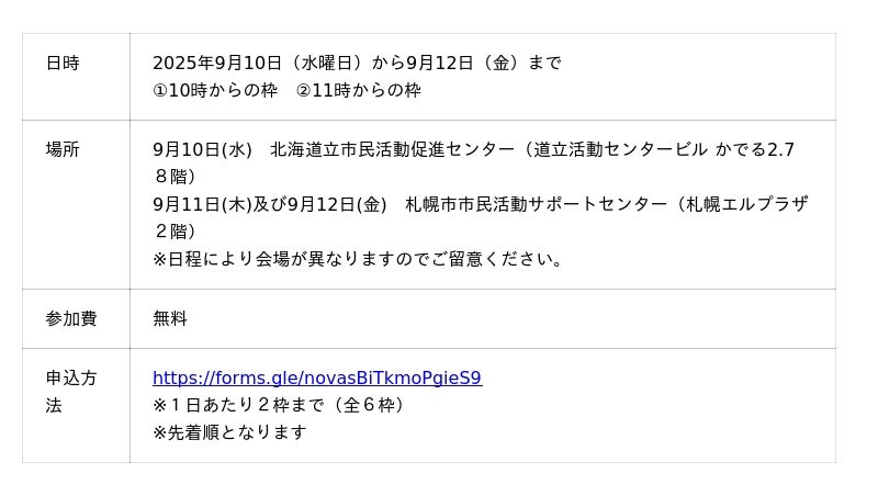 【協力】札幌市市民活動サポートセンター、 NPO法人北海道NPOサポートセンター