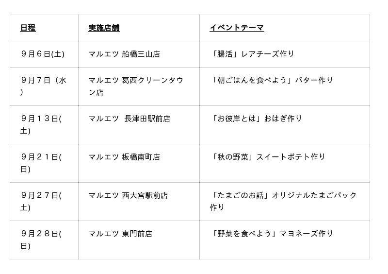 今月から食育イベントの開催店舗数を拡大し、東京・埼玉・千葉・神奈川の各店舗にて順次開催いたします。