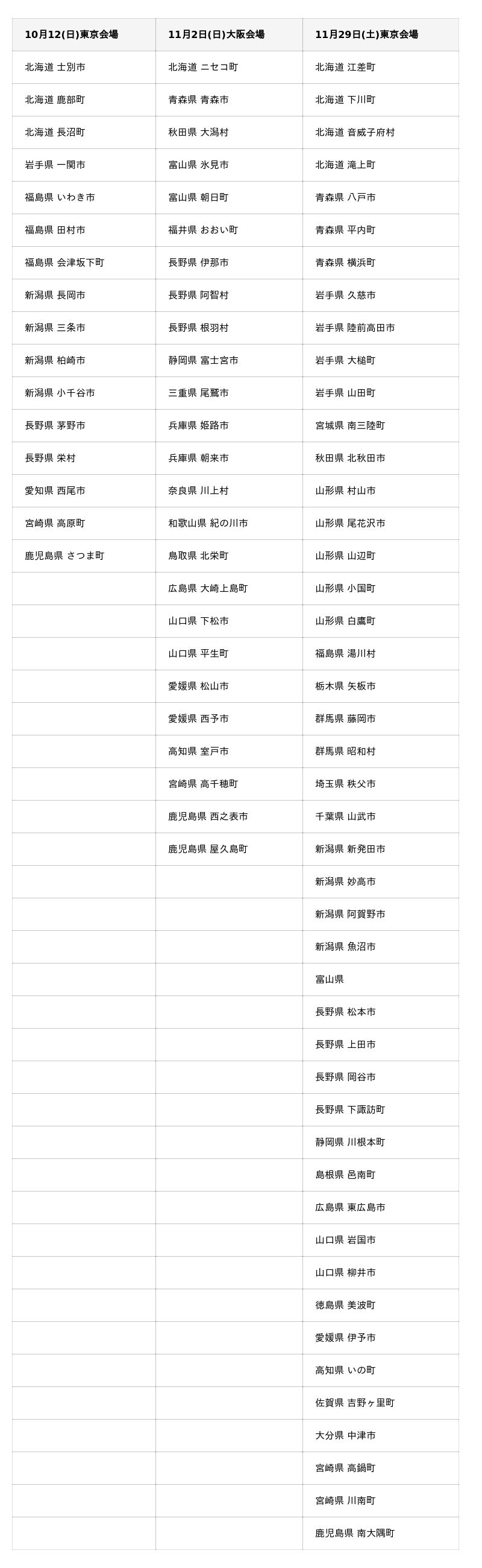 本イベントには全国から80以上の自治体が参加します。以下に参加予定の自治体をご紹介します。