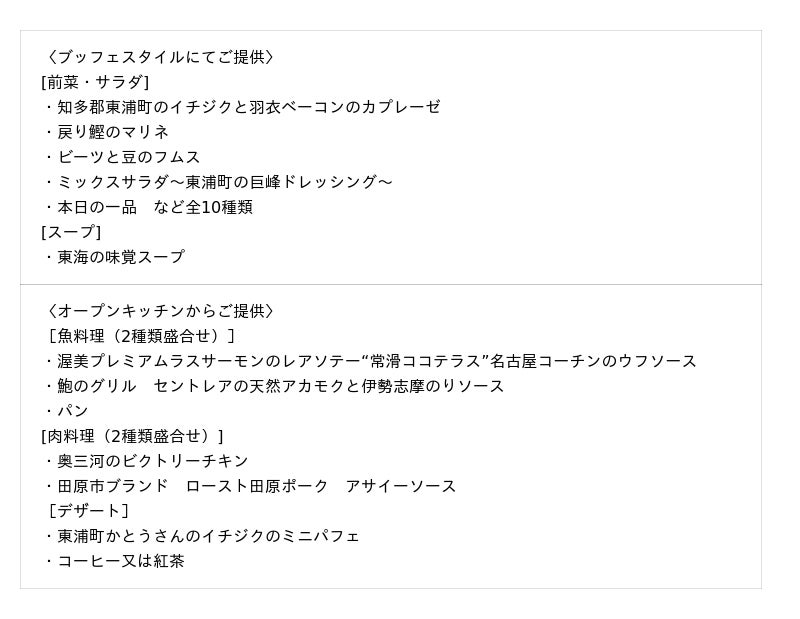 *食材の入荷状況などにより内容が変更になる場合もあります。