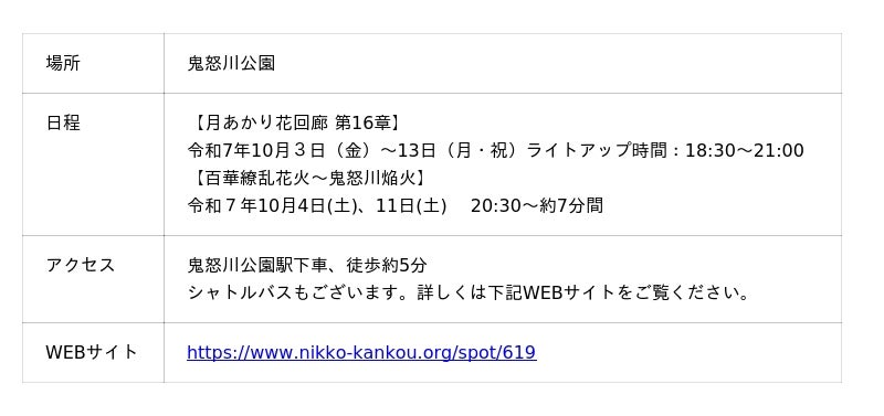 昼間とはまるで違う、幻想的な“夜の日光”。澄んだ空に咲く大輪の花と、ゆらめく灯りに心をほどく秋。この秋、自然と歴史が織りなす非日常の舞台で、感動の一夜を体験しませんか。【ライトアップ NIKKO 2025(世界遺産・日光の社寺)】