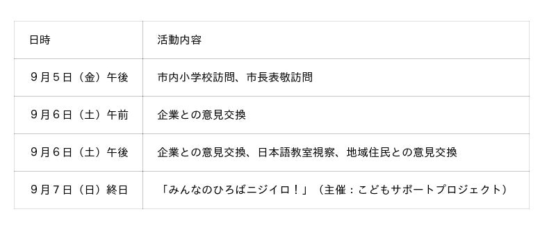 スタディツアー期間中、参加学生は地域住民や企業、市民団体との意見交換を通じて、出雲地域における多文化共生の実態を調査します。主な活動は以下の通りです: