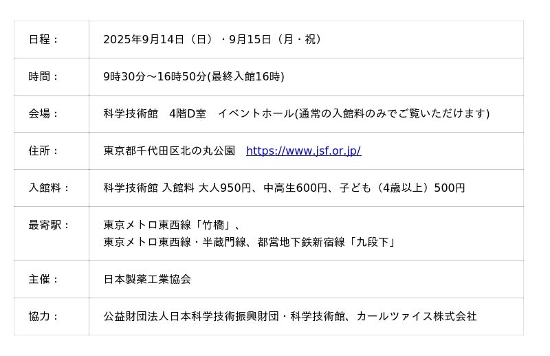 (参考)「製薬協 クスリウム研究室2025秋」開催概要