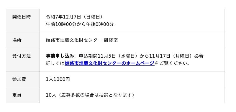 宮山古墳に葬られた武人が愛用した剣をモチーフに、精巧なミニチュアを厚紙で製作します。【注意】応募多数の場合は抽選となります。刃物等を使って細かい作業を行います。概ね15歳以上の方を対象とします。1通あたり1名様のみのお申し込みとなります。