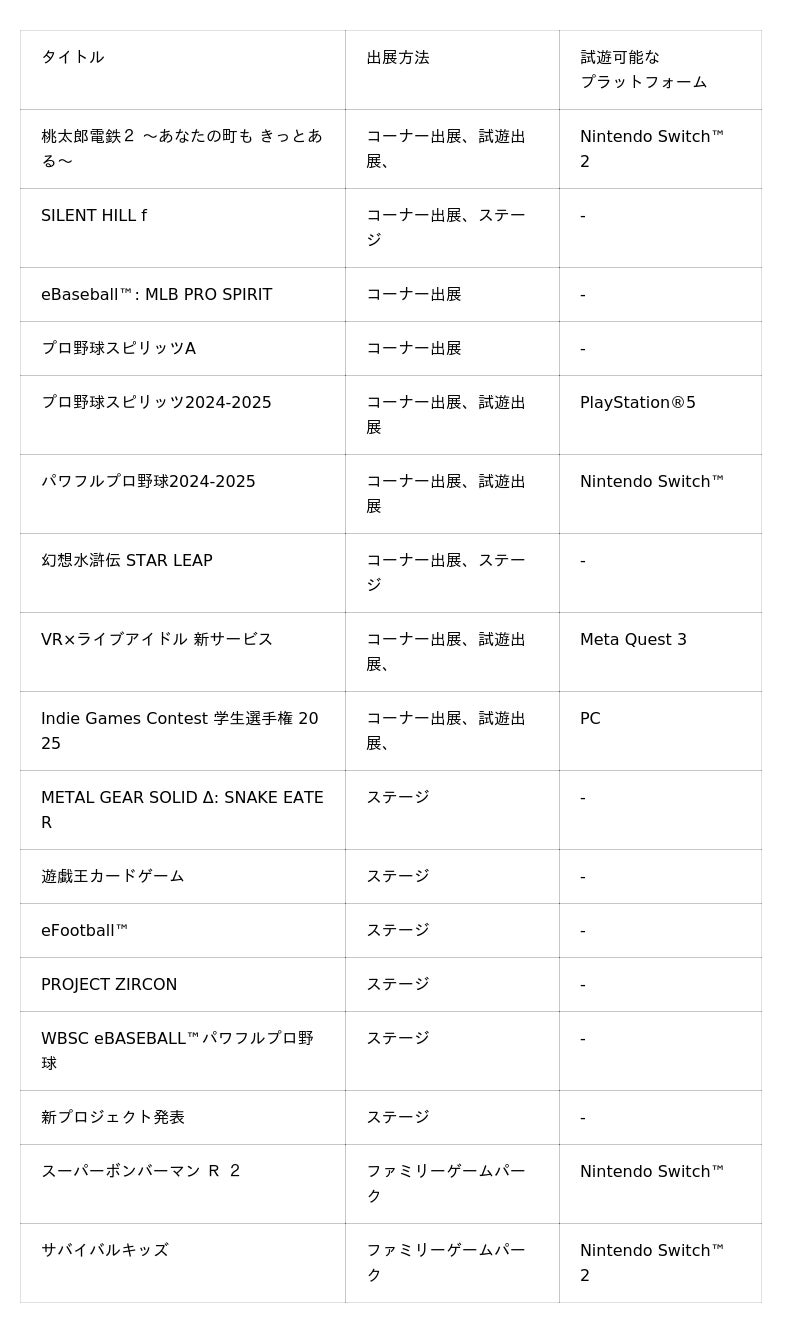 株式会社コナミデジタルエンタテインメントは、9月25日(木)から開催される「東京ゲームショウ2025」へ出展することをお知らせします。今年のコナミデジタルエンタテインメントブースは、「桃太郎電鉄」シリーズ最新作『桃太郎電鉄2 ~あなたの町も きっとある~』(以下、『桃鉄2』)の最速プレイアブル出展や『SILENT HILL f』の体験型謎解きエリアを中心として、国内外に向けて発売予定の新作や発売・運営中の人気作15タイトル以上を出展します。