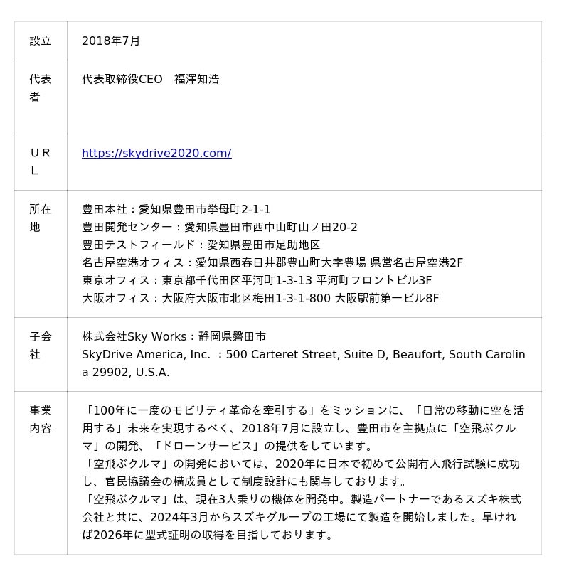 ≪株式会社SkyDrive 概要≫