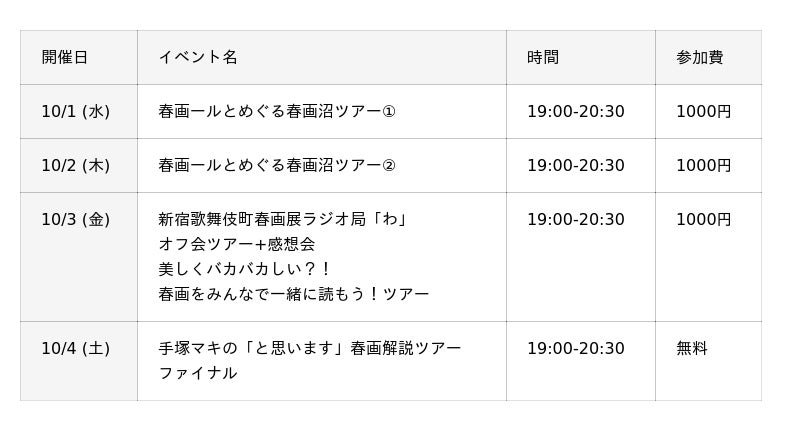 10/1 (水)・10/2 (木) 春画ールとめぐる春画沼ツアー1.・2.