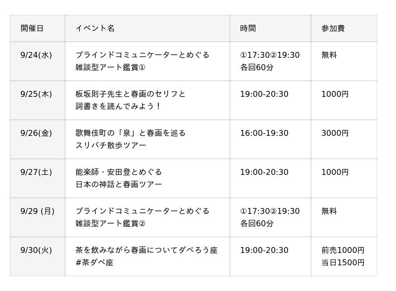 参加費:無料 ※別途春画展のチケット購入必須