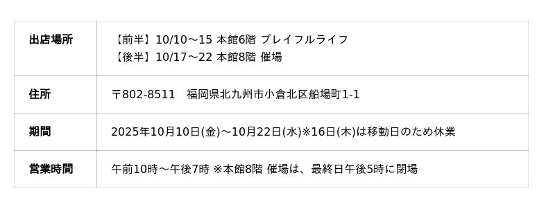 建設DXに取り組む野原グループ株式会社(本社:東京都新宿区、代表取締役社長:野原弘輔)は、2025年10月10日(金)~10月22日(水)の13日間、小倉井筒屋(福岡県北九州市小倉北区船場町1-1)にGOOD DESIGN STORE TOKYO by NOHARAがPOPUP初出店することをお知らせいたします。