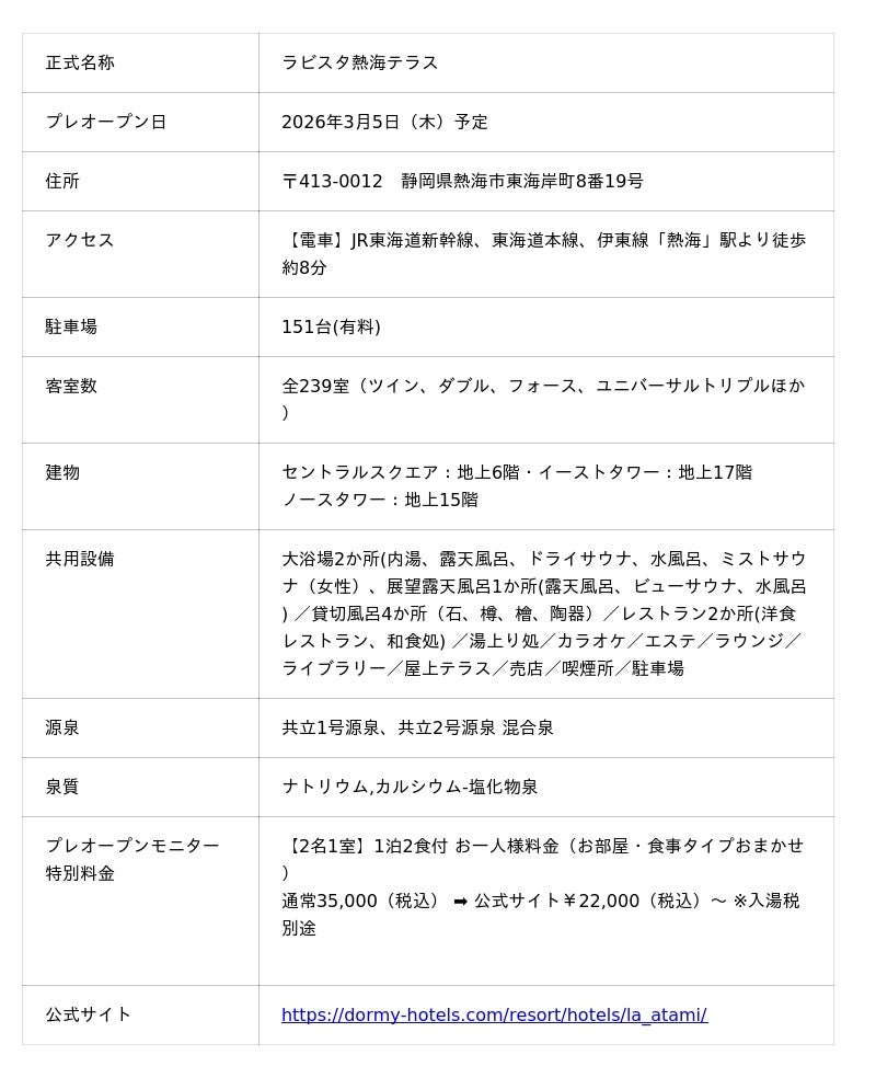 『ラビスタ熱海テラス』公式WEBサイト:https://dormy-hotels.com/resort/hotels/la_atami/