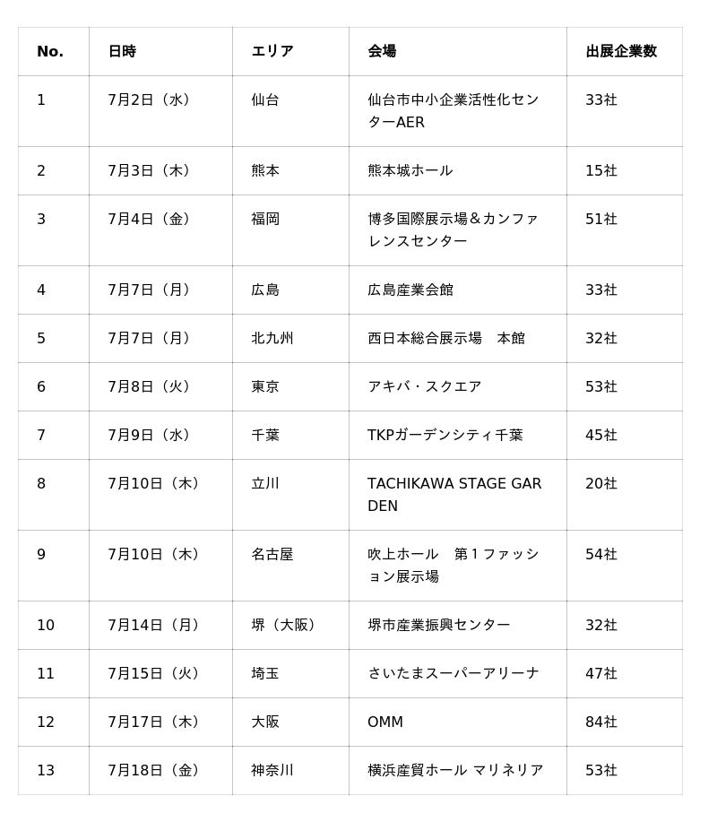 【調査会場】 仙台・熊本・福岡・広島・北九州・東京・千葉・立川・名古屋・堺・埼玉・大阪・神奈川 13会場にて