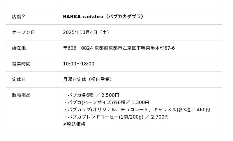 ※「日本初」に関しては2025年9月時点での当社調べ(日本国内における「バブカ専門店」として)