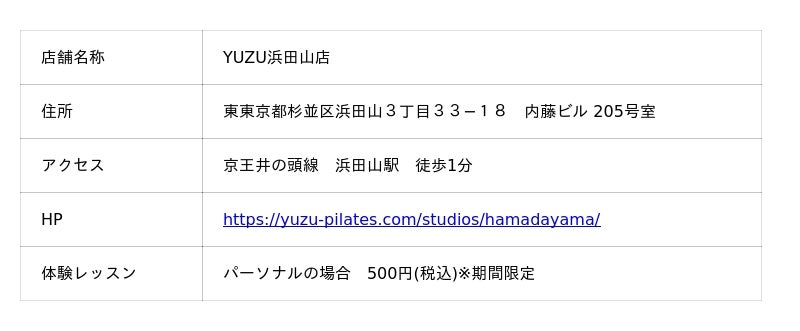 ▶︎https://yuzu-pilates.com/studios/hamadayama/