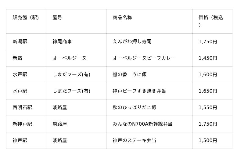 「秋のひっぱりだこ飯」や「みんなのN700A新幹線弁当」をはじめ、全国から約15種類の人気の駅弁を、数量限定で販売します。