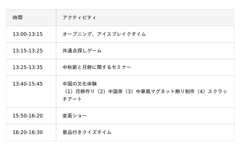 中秋節とは旧暦8月15日に行われる、秋の満月を愛でながら家族で祝う中国古来の伝統行事で、2025年 の中秋節は本日10月6日(月)です。それに先立ち、中国語を学ぶことが楽しいものであるということに加え、日本と違う文化を実際に体験していただきたいという主旨のもと、月餅作り、中国茶体験、中華風マグネット飾り制作、スクラッチアートなど、多彩な文化体験を実施しました。