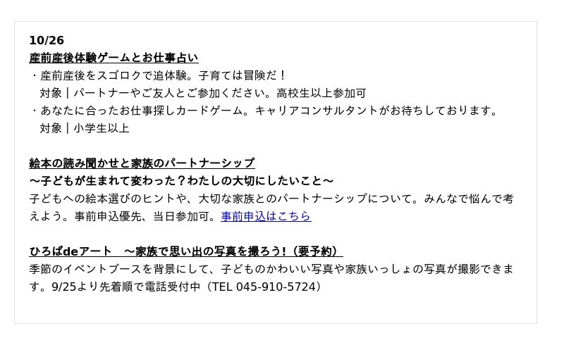 ■親子で楽しめるイベントも盛りだくさん!当日参加可能なプログラムも!