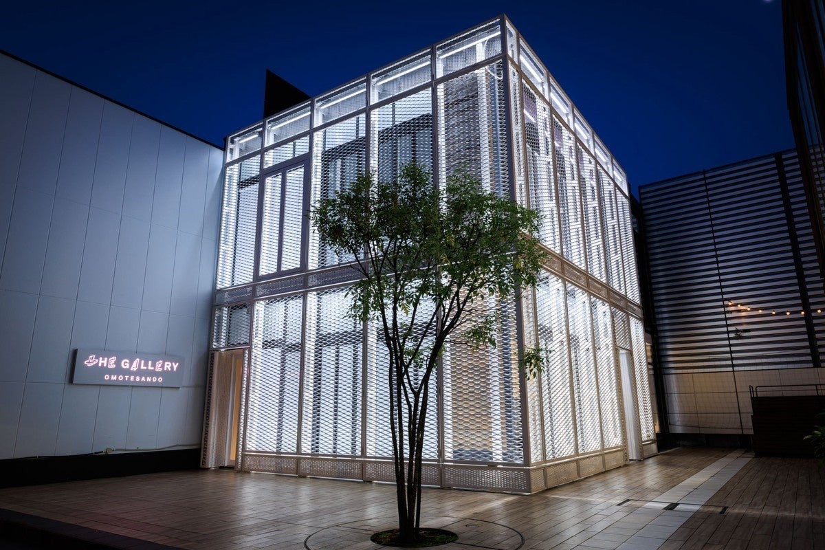 生まれる表参道。その欅並木から小径を一本入ると、夜空に浮かぶガラスの立方体 〈tHE GALLERY OMOTESANDO〉 が姿を現します。 国内外の気鋭アーティストが個展を開き、ハイブランドのプライベートイベントも行 われる― まさに “アートとファッションの発信拠点” です。