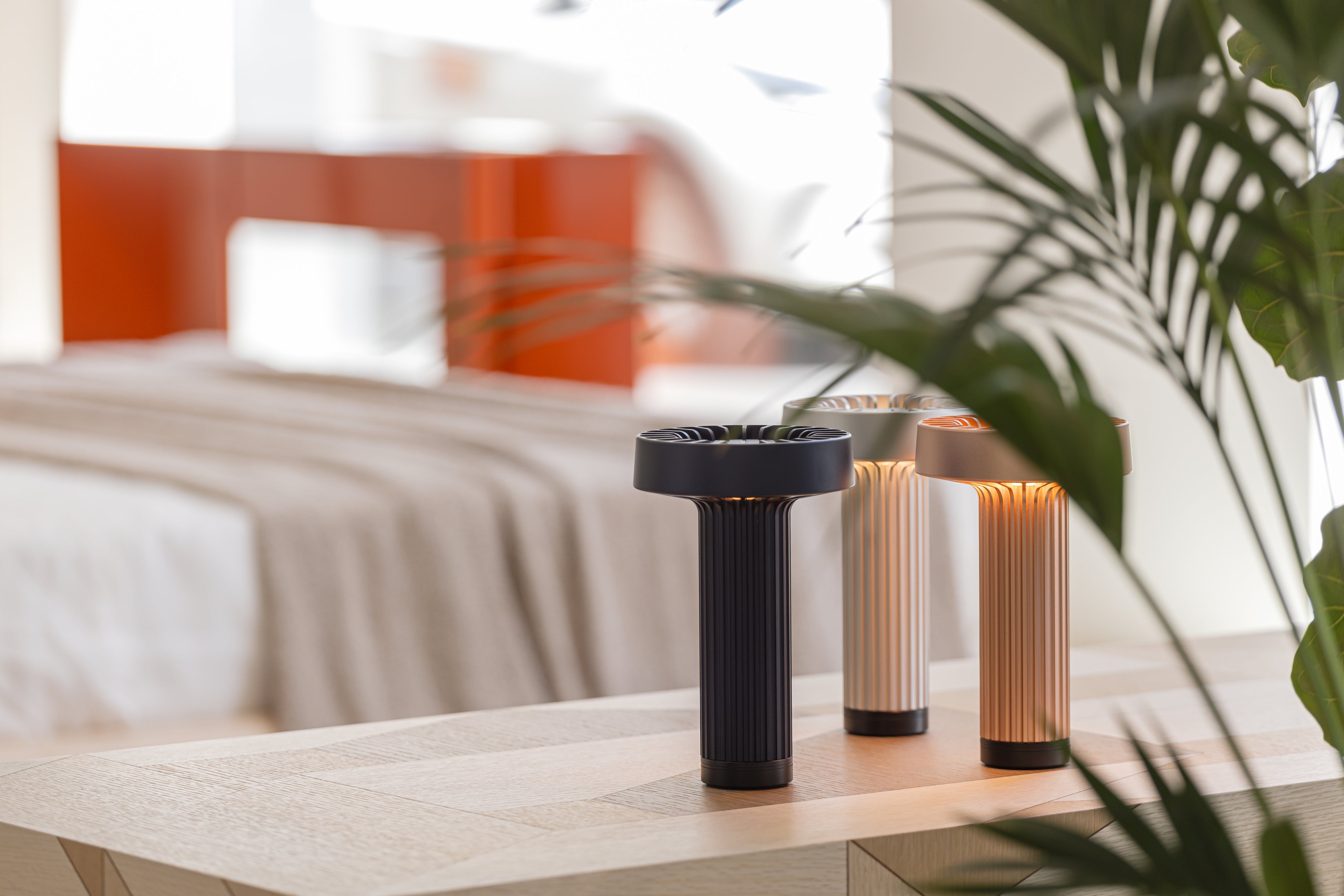 アンビエンテックは、2009年に設立され、水中ライトメーカーとしての技術を応用し、コードレスのインテリア照明を開発した日本のポータブル照明のブランド。その「灯りの質」への徹底したこだわりは、単なる照明器具を超え、優美で詩的な美学が組み合わさった現代的なアイコンとなっています。