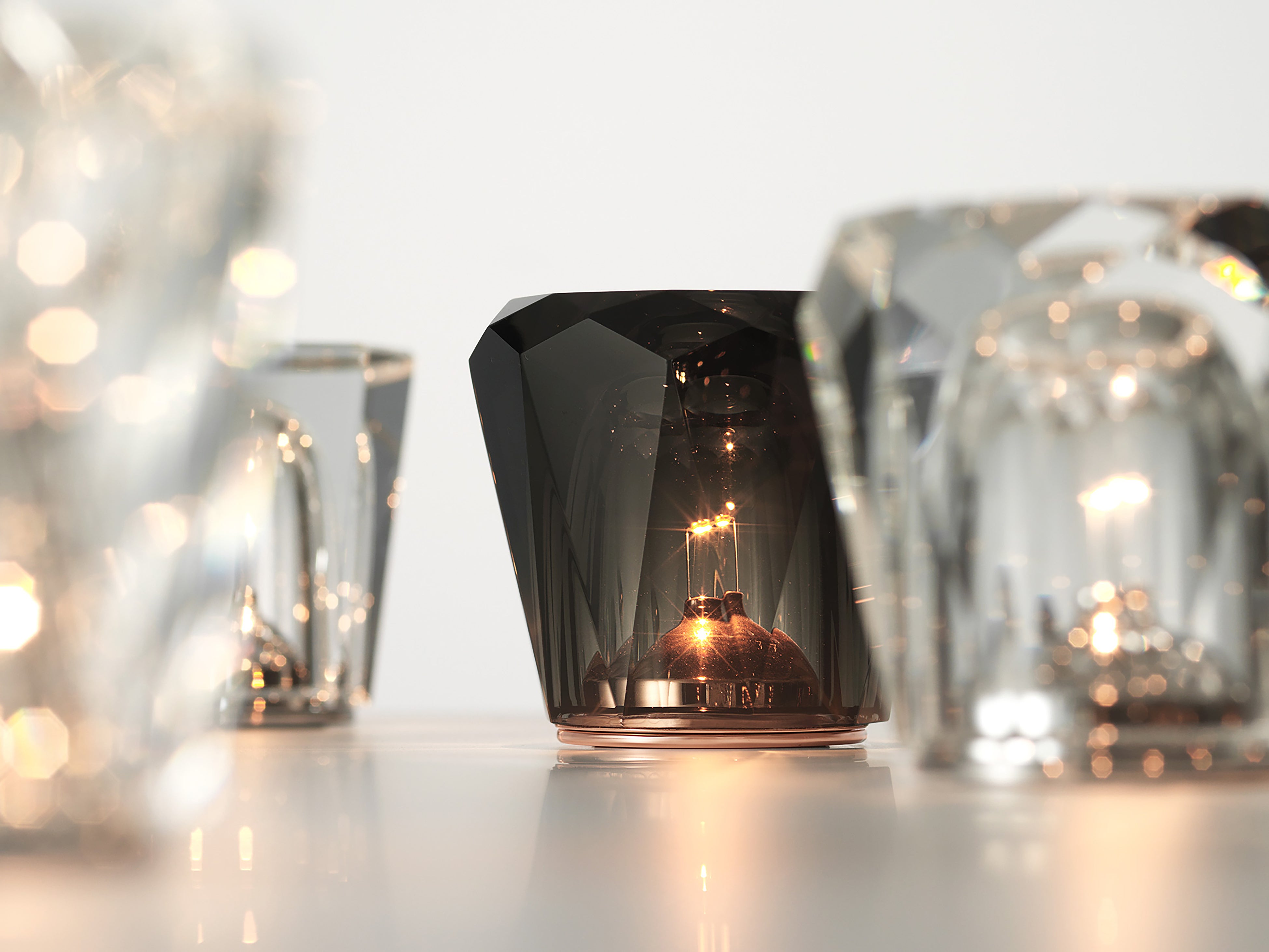 Xtalのアクルクスは宝石のように多面的にカットされており、まるでダイヤを散りばめたような一つ一つ異なる灯りが幻想的。