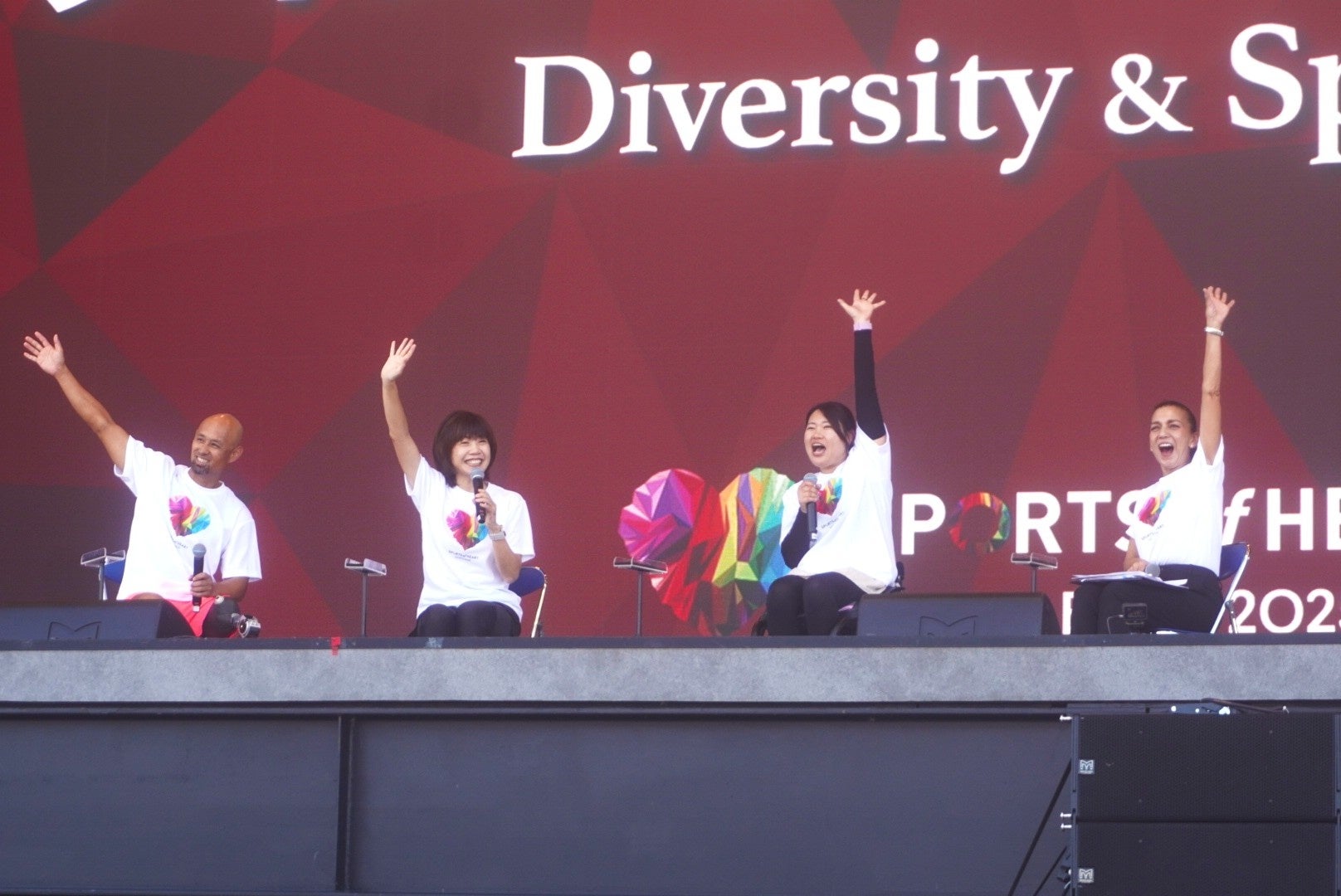 高室は、シドニーオリンピック女子マラソン金メダリストの高橋尚子さん、リオパラリンピック走り幅跳び銀メダリストの山本篤さんらとともにトークショーに登壇し、「ダイバーシティ&スポーツ」をテーマに語り合いました。
