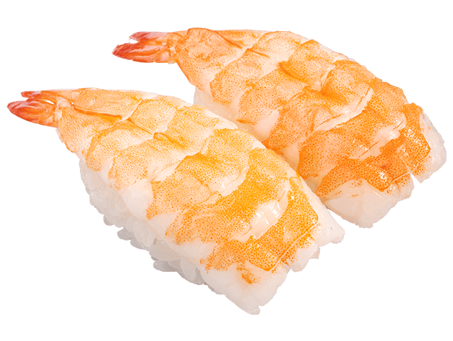 『えび』二貫 110円(税込)ぷりっとした食感と甘みを、赤酢が引き立てる爽やかな味わい。