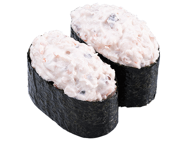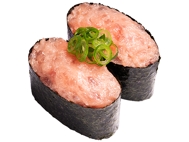 『ねぎとろ軍艦』二貫110円(税込)まろやかな赤酢がねぎとろの旨みを引き立てます。