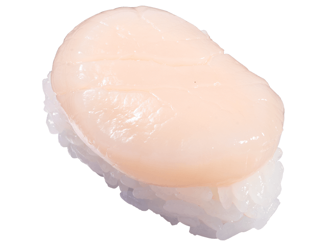 『ほたて』一貫 160円(税込)~繊細な甘みと旨みを赤酢がふんわり包み込む美味しさ。