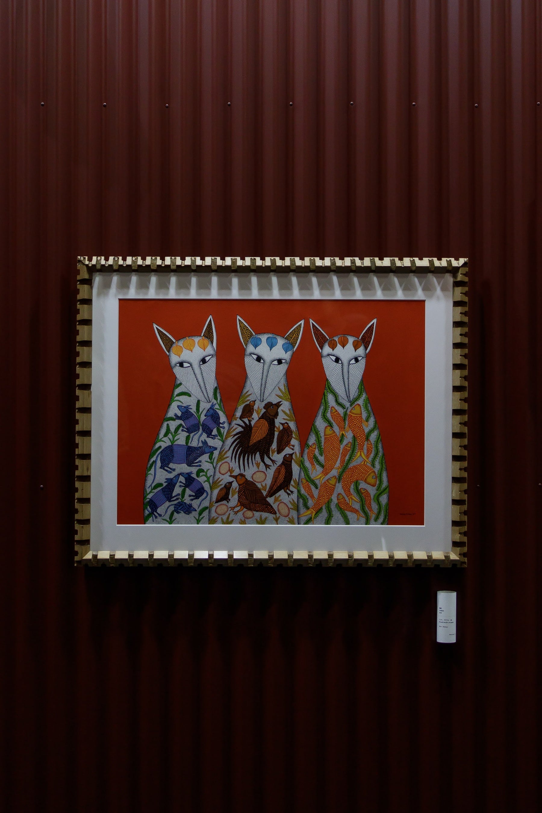 「自然への畏敬の念」「生命の循環」「ゴンド族の伝統」などをテーマに、Bhajju Shyamが描く独自の世界が広がります。