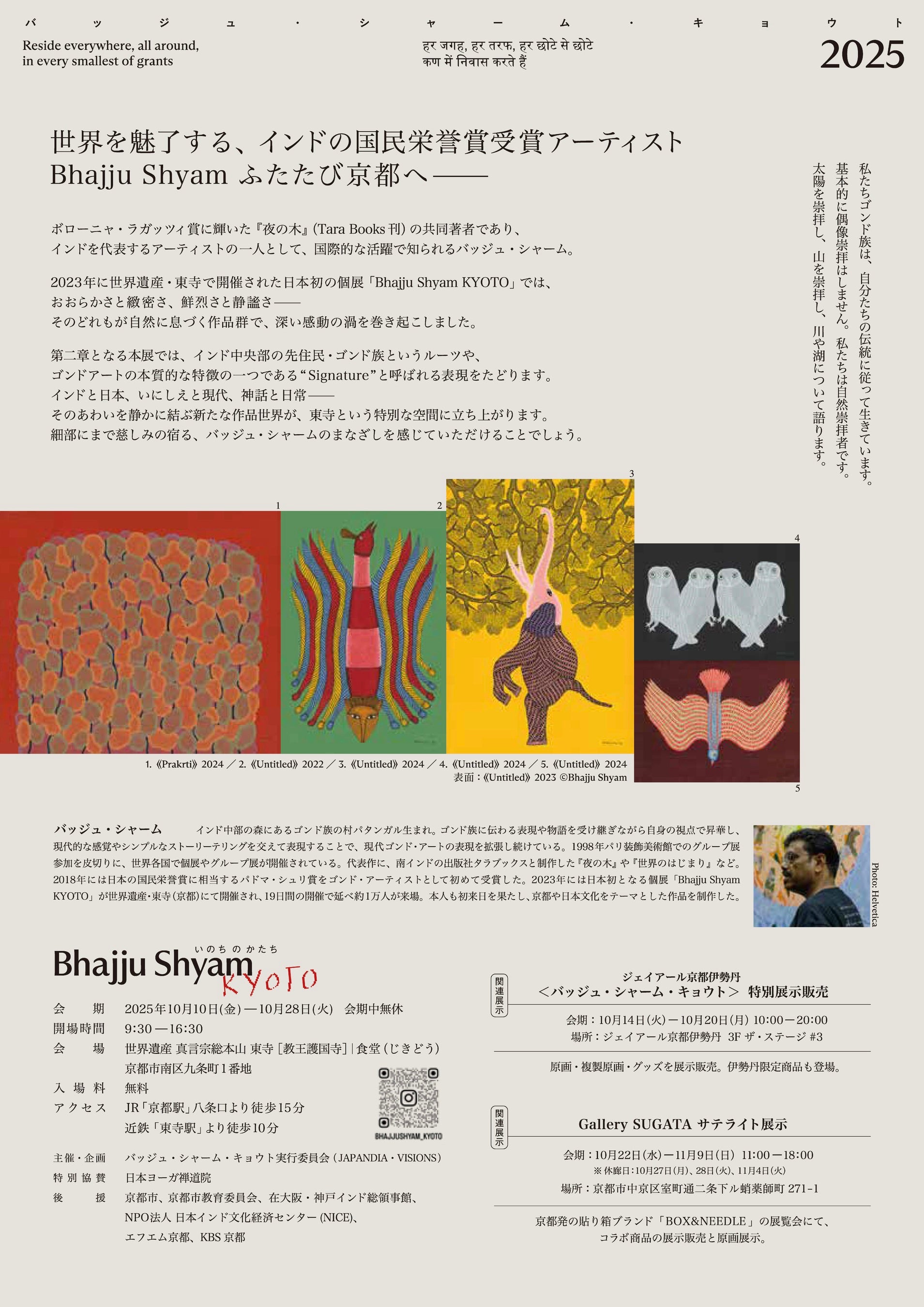 バッジュ・シャーム・キョウト実行委員会は、2025年10月10日(金)から28日(火)まで、京都・世界遺産 東寺にて、インドを代表するアーティスト Bhajju Shyam(バッジュ・シャーム)の展覧会「Bhajju Shyam KYOTO 2025 いのち の かたち」を開催しています。
