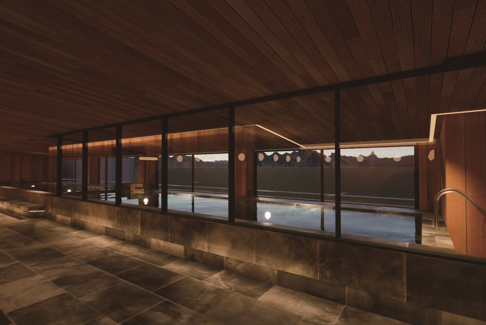 4階フロアに新たに展望風呂を新設いたします。これにより、雄大な恵那峡の眺望をより楽しみながら、良質な温泉をご堪能いただけます。既存のB1フロアの2ヶ所にあった大浴場と露天風呂は1つに統合し、広々とした大浴場と露天風呂になります。どちらのお風呂も男女入替制ですので、入浴の楽しみが広がります。泉質:カルシウム・ナトリウム-塩化物温泉(高張性・弱アルカリ性・低温泉)