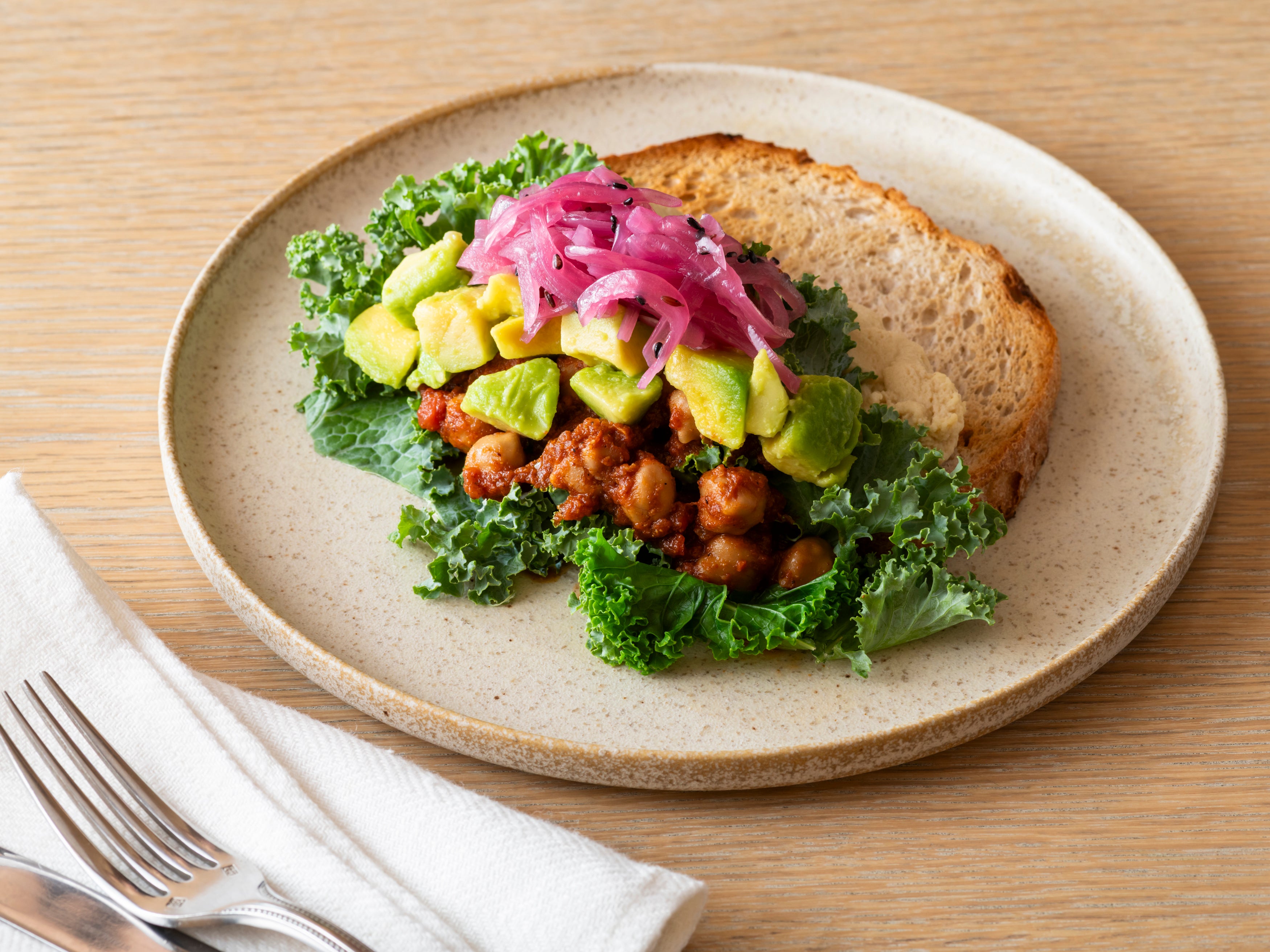 和食御膳八種の小鉢、ブレストチキンと青菜のフォー、ライ麦パンのオープンサンド ひよこ豆のフムスとアボカド、和洋食のみならずアジアンメニューやヴィーガンメニューも幅広くラインナップ。