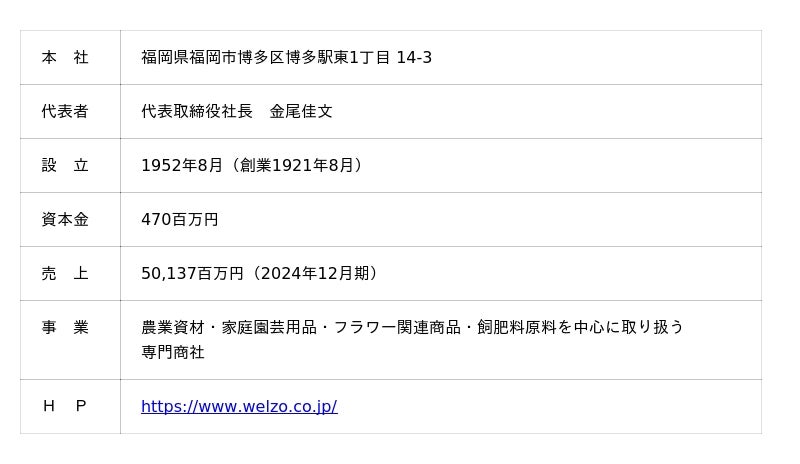 食・農業を通して、持続可能な社会と人々の暮しを豊かにする商品やサービスを提供する、農業資材・家庭園芸用品・フラワー関連商品・飼肥料原料を中心に取り扱う専門商社です。2022年で創業 101 年を迎えたニチリウ永瀬は、2023年1月1日をもって、「株式会社welzo」に社名を変更。BtoB を中心としたビジネススタイルを築き、国内に24拠点を置いています。 社内外のビジネスパートナーと共創し、ITやAIの技術を活用しながら、日本が直面する課題にも積極的に取り組んでいます。