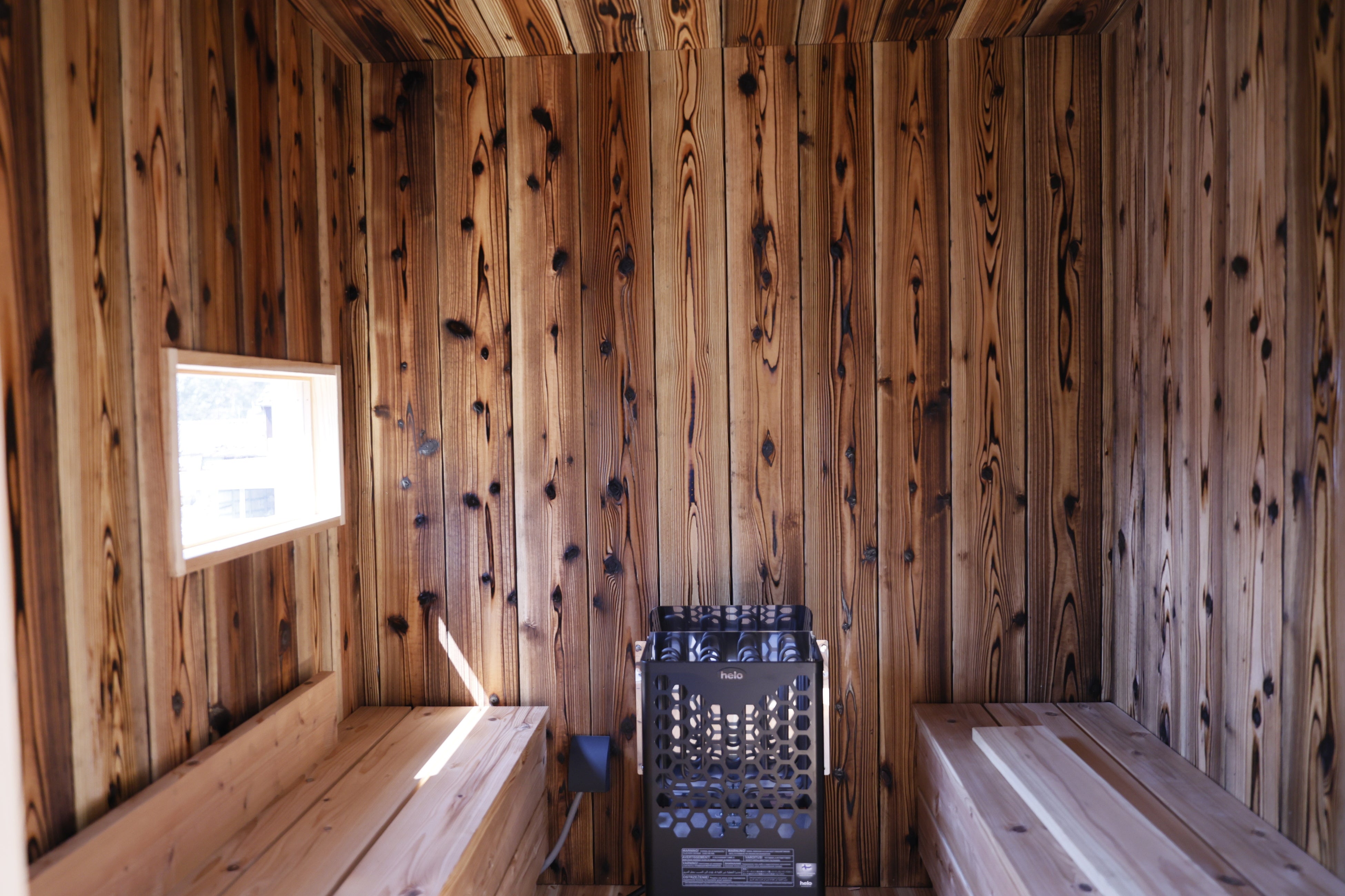 - フィンランドサウナ設備宿泊者限定で利用可能なプライベートサウナを設置。4名が同時入室可能なゆったりとした空間にフィンランドサウナ(:helo社製)を設置。広々としたベランダ部分にて海風を浴びながらの外気浴も可能です。(要水着着用)