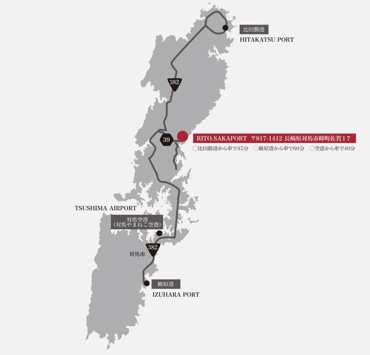「RITO SAKAPORT」は、対馬の真ん中・峰町佐賀(さか)地区に位置しています。