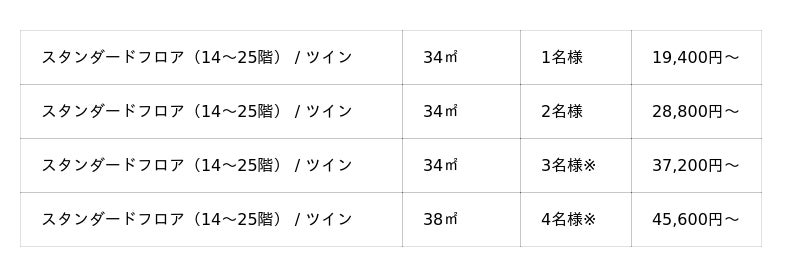 【客室タイプ・料金】 1泊1室料金(朝食付、税金・サービス料含む)
