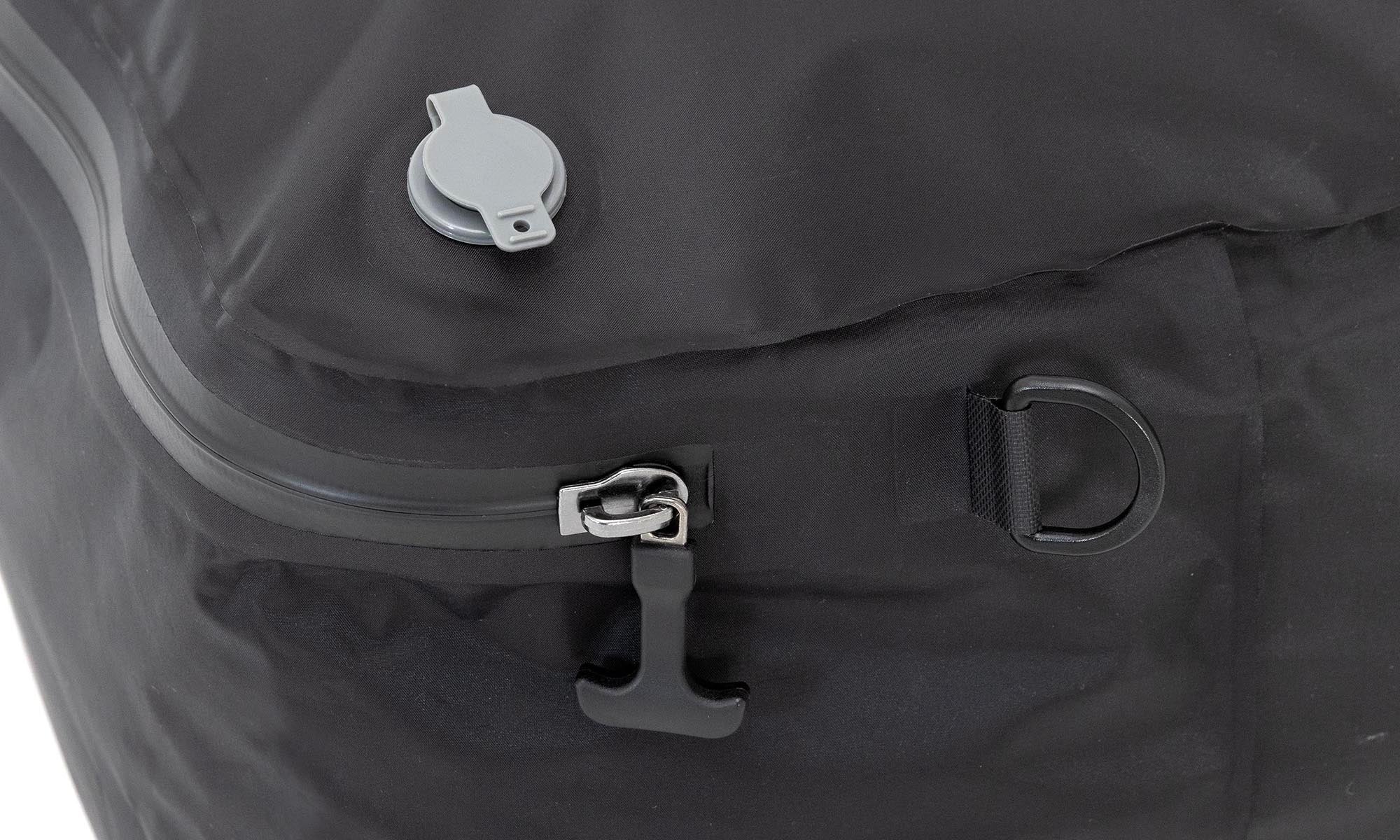 また、ジッパーをしっかり閉められるよう工夫することで、圧縮状態を保持。D型リングで持ち手を工夫し硬く閉められたジッパーを開閉しやすくしました。