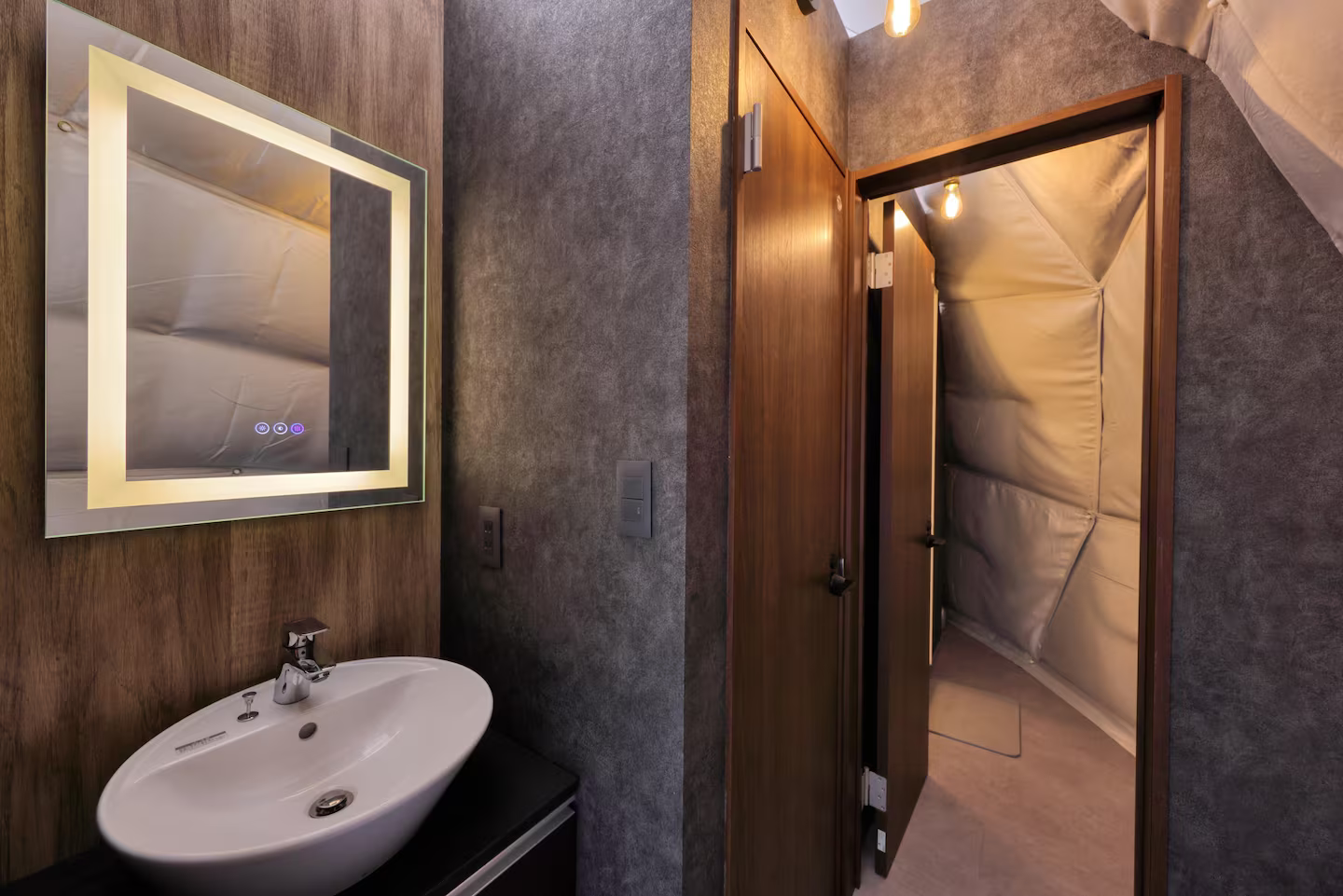 ドーム内にシャワールーム・洗面所・トイレを備えており、冷暖房完備で快適に過ごせます。