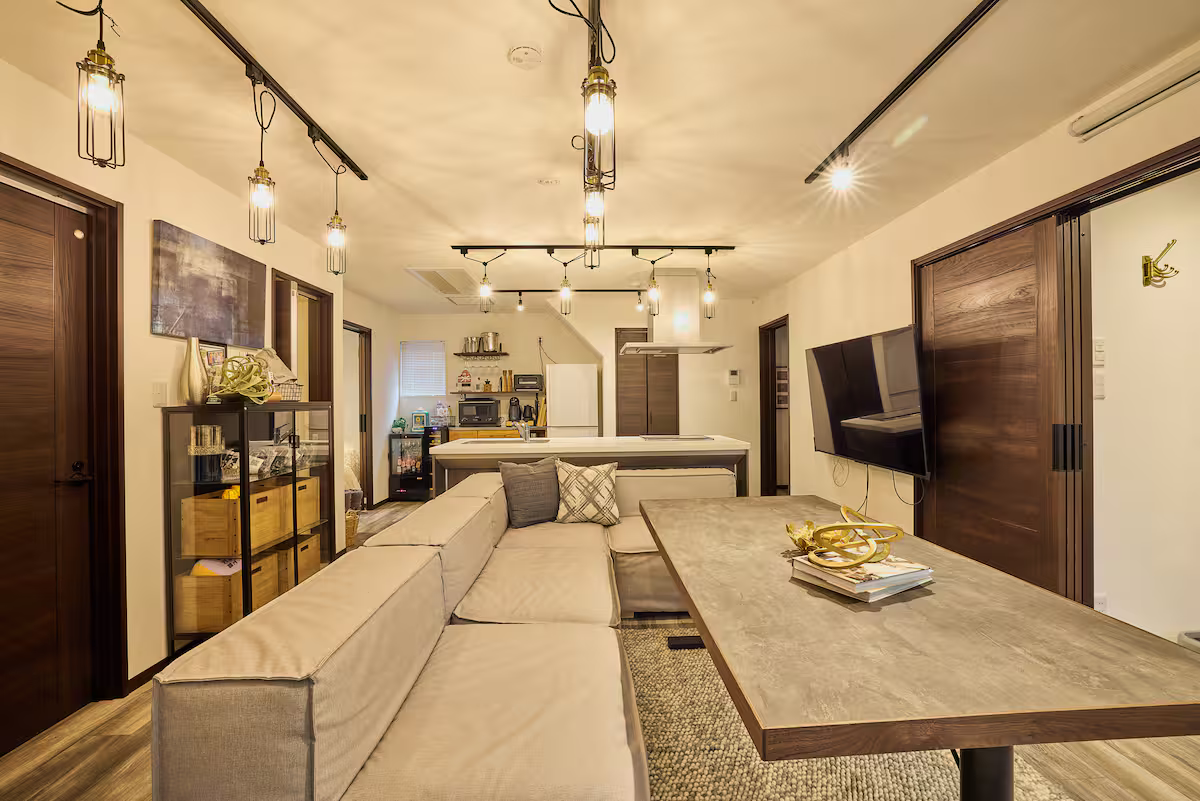 ソファー、エアコン、テレビ、室内暖、薪ストーブ、囲炉裏、Wi-Fi、ストーブガード、ダイニングテーブル、ホームシアター