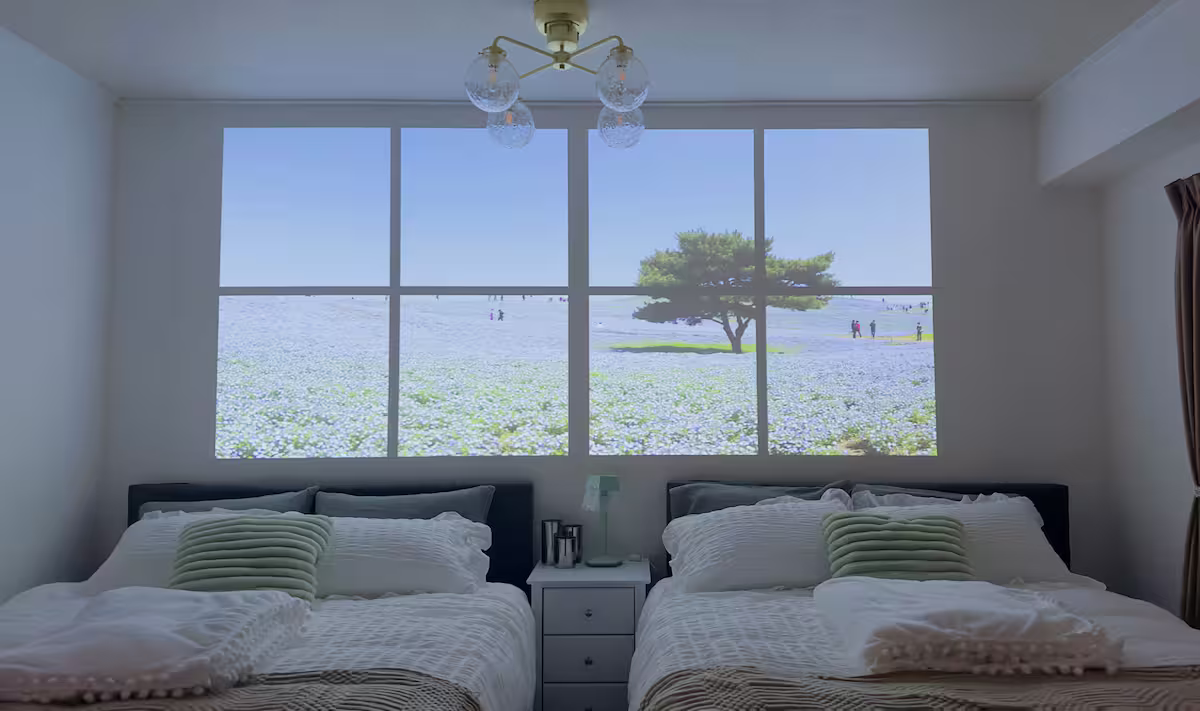 ダブルベッド2台、ソファーベッド、エアコン、シーツ類、遮光カーテン、暖房