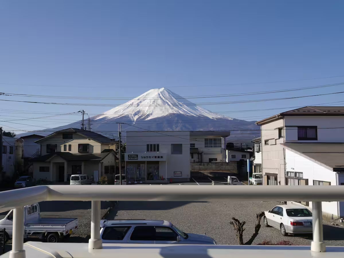 建物は、河口湖駅から徒歩6分で、富士山が望める好立地にあります。晴れた日は、富士山の絶景が目の前に広がります。建物の至る所から富士山をご覧いただけます。富士山を感じながら、お過ごし頂ければと思います。