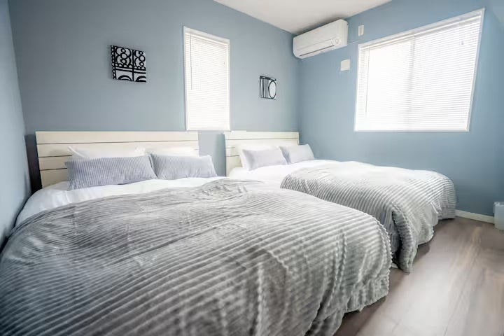 設備:ダブルベッド2台、エアコン、シーツ類、暖房、予備の枕と毛布