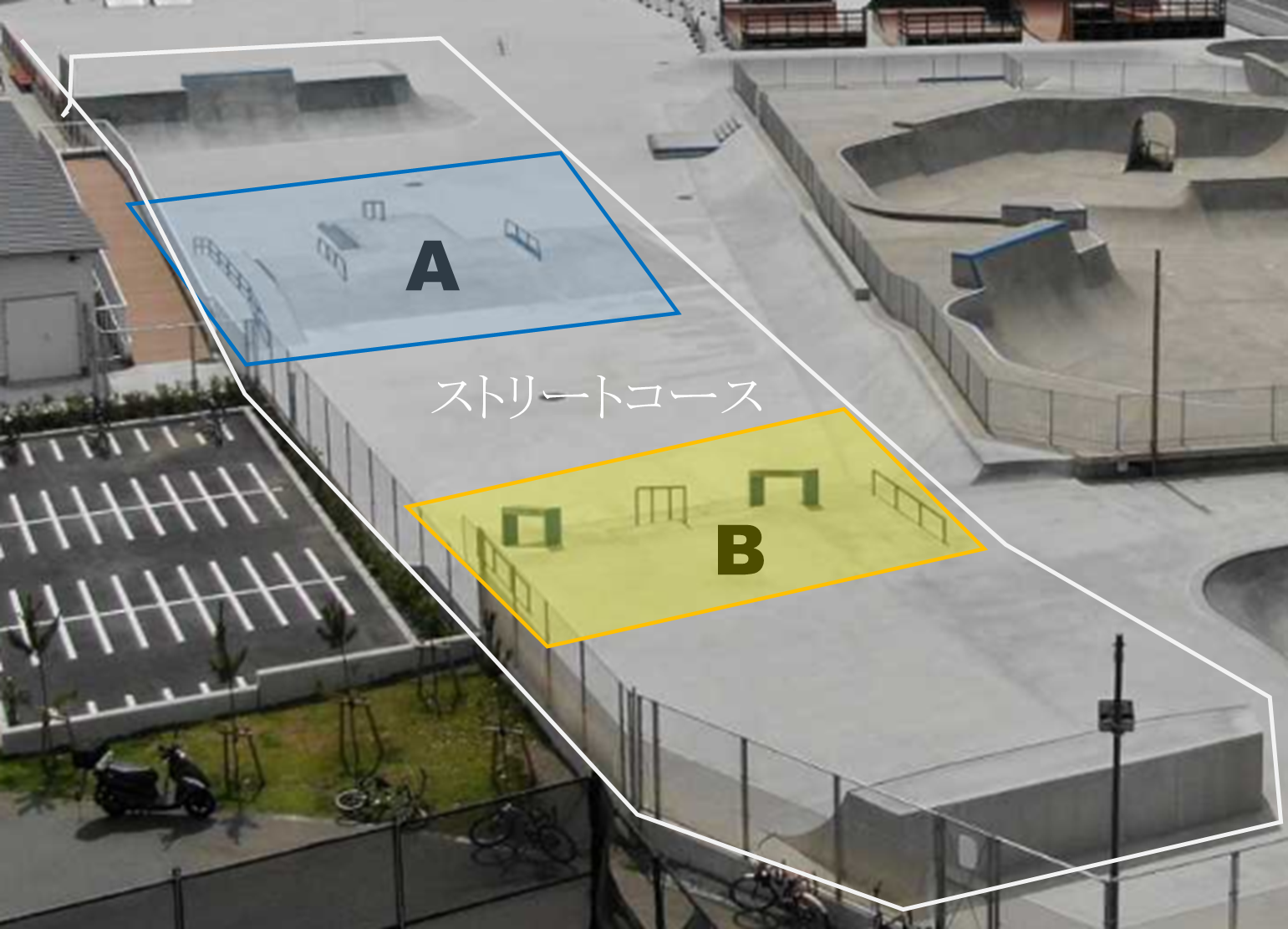 ルール:フラットとバンク(注記1)のみを使用し、オーリー(注記2)ができる方が対象です。フリップ(注記3)、レールトリック(注記4)は採点の対象にはなりません。