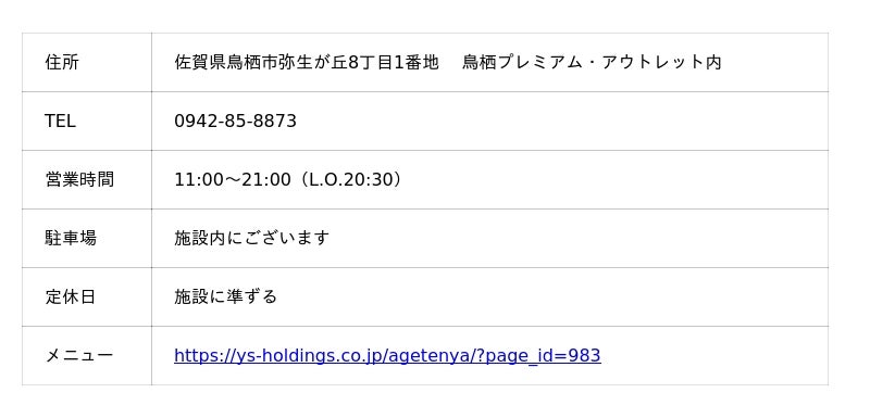 あげてんや 佐賀鳥栖プレミアム・アウトレット店