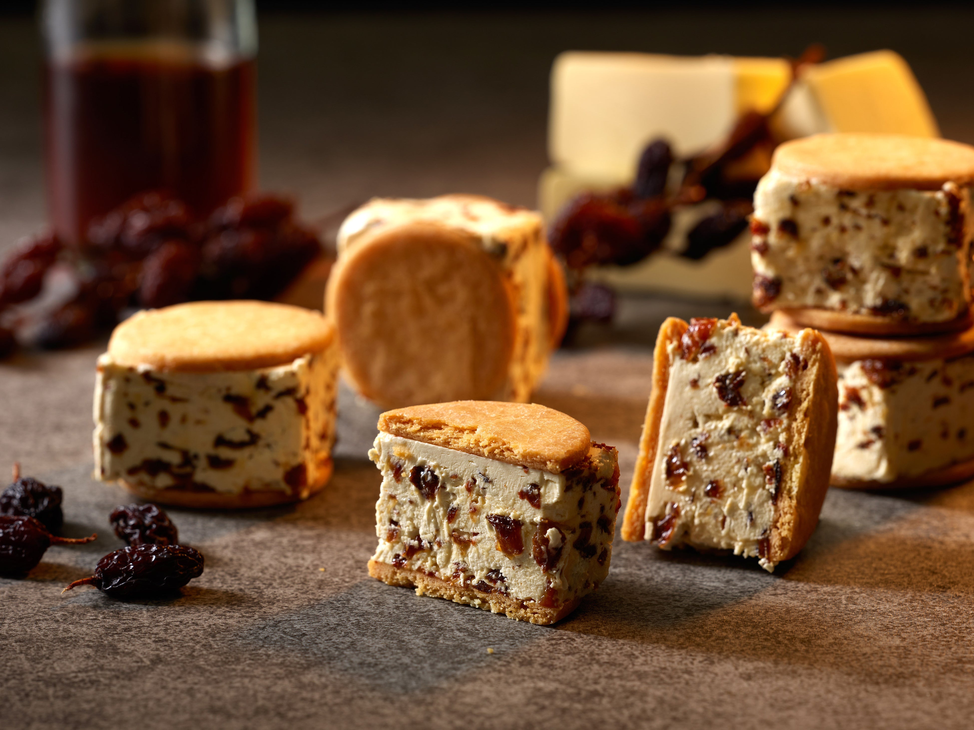 厳選した芳醇な香りの国産バタークリームに、ラムレーズンを混ぜ込み、1つずつクッキーで丁寧にサンドしました。