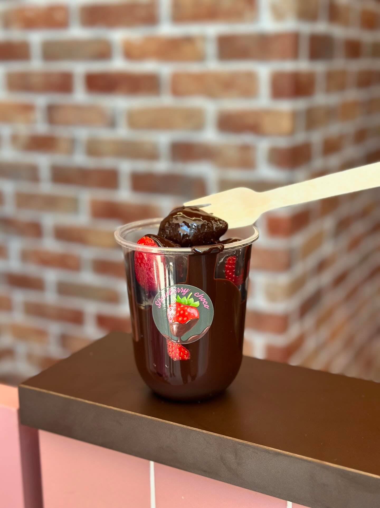 カップに入った苺の中に豪快にチョコを流し込む!!!!!!