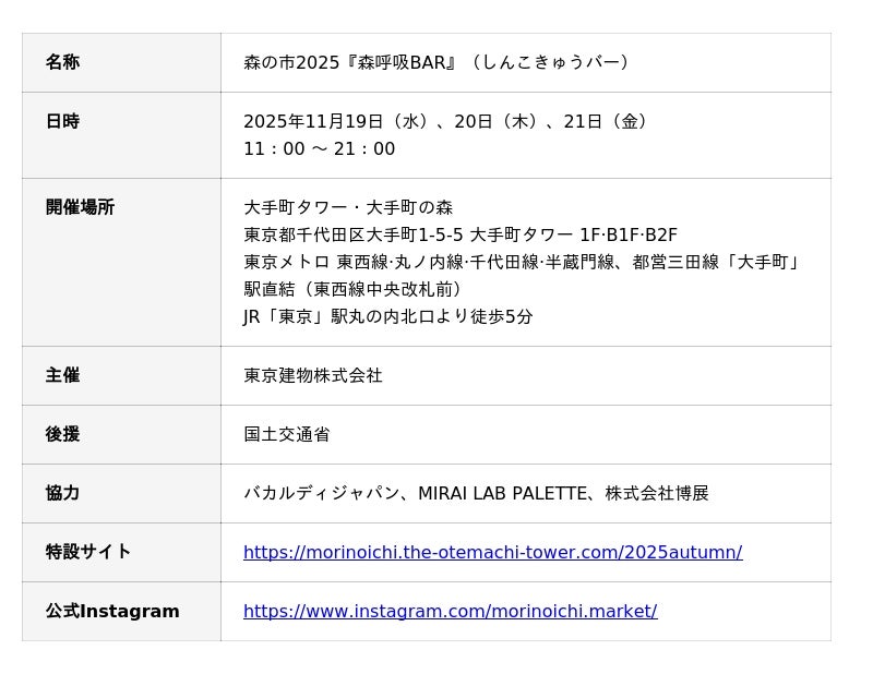 ※ 森の市2025 特設サイト:https://morinoichi.the-otemachi-tower.com/2025autumn/