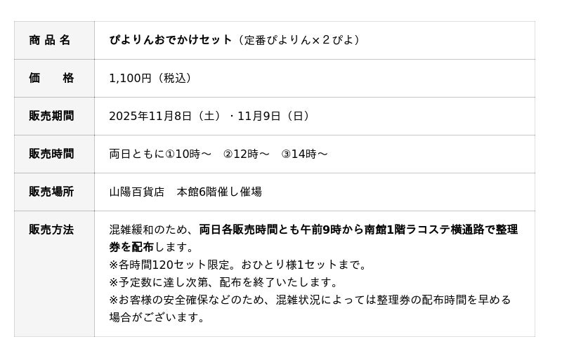 ジェイアール東海フードサービス株式会社(本社:愛知県名古屋市、代表取締役社長:岩下賢一)は、山陽百貨店(兵庫県姫路市)にて開催される「日本列島絶品うまいもの大会」にて、2025年11月8日(土)・9日(日)の2日間限定で、オリジナルスイーツ「ぴよりん」を実演販売します。