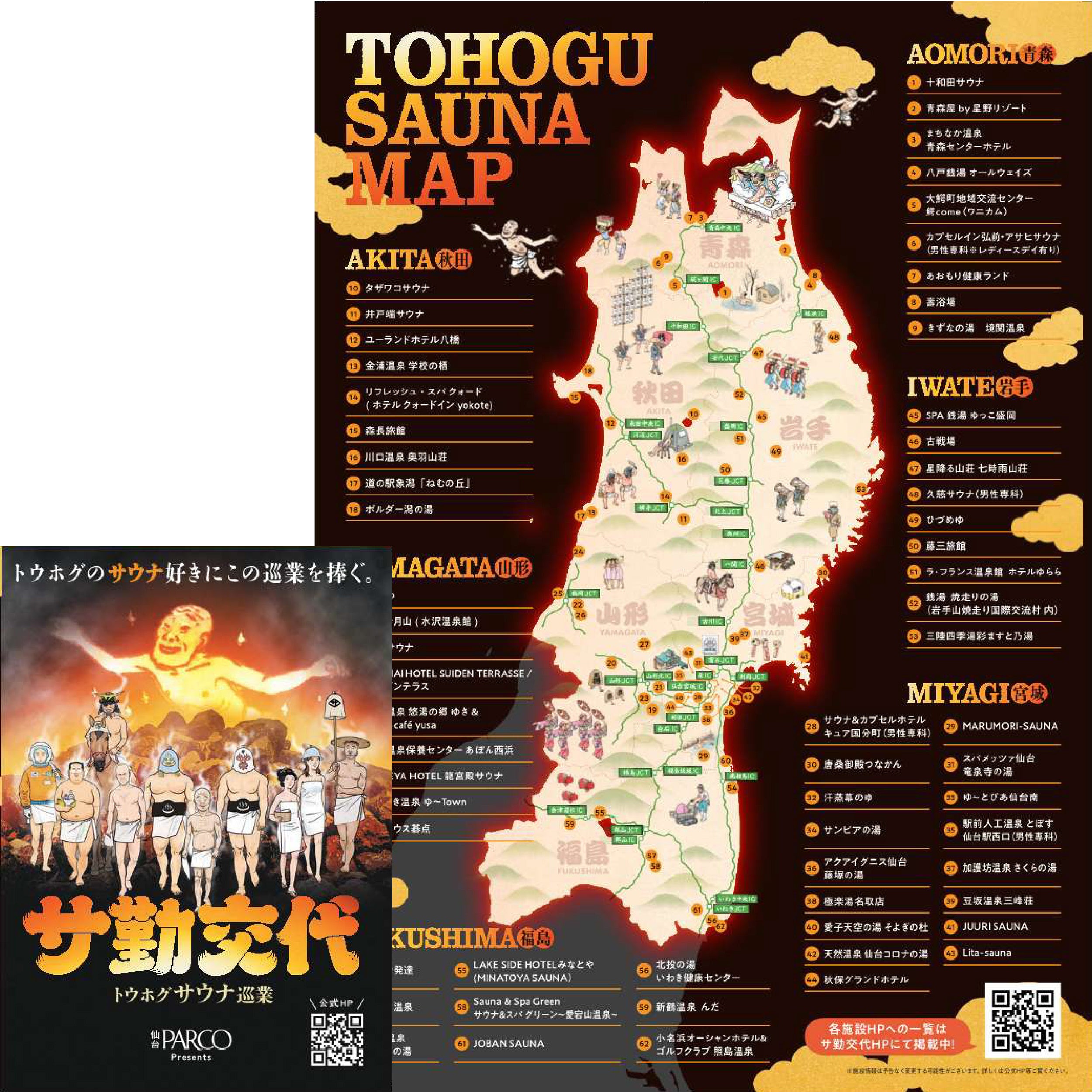 トウホグサウナ62施設の行脚を応援する 「TOHOGU SAUNA MAP」を封入。